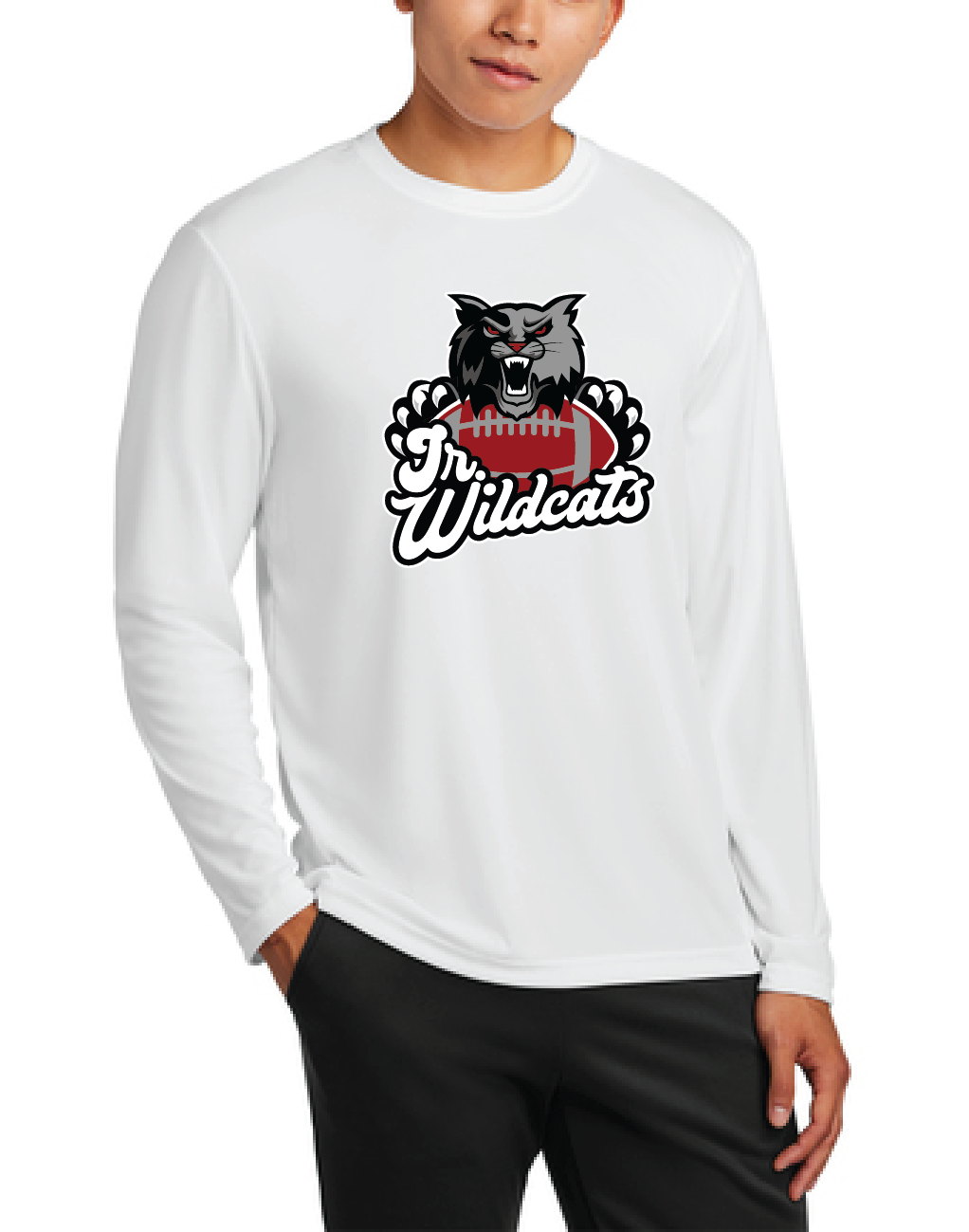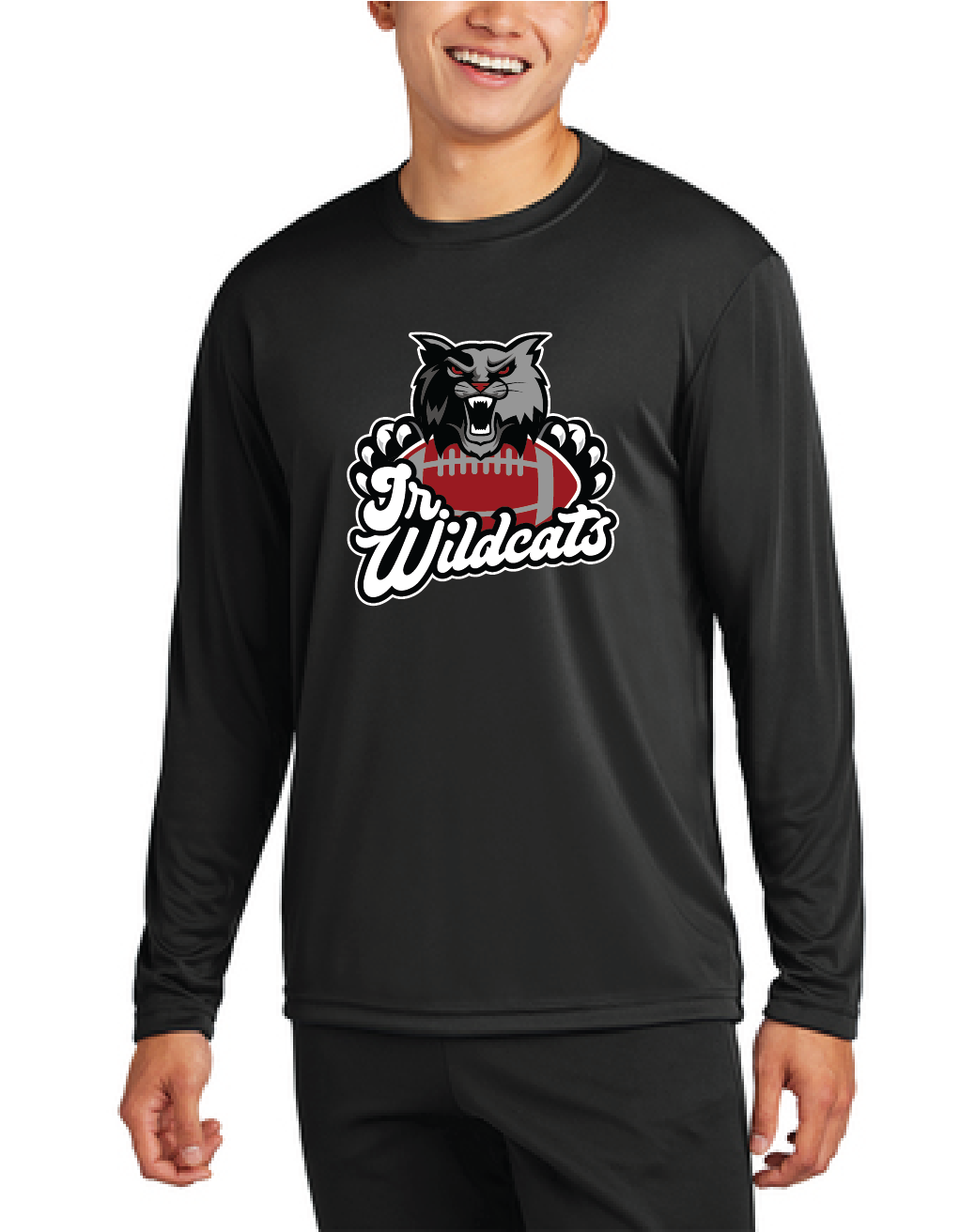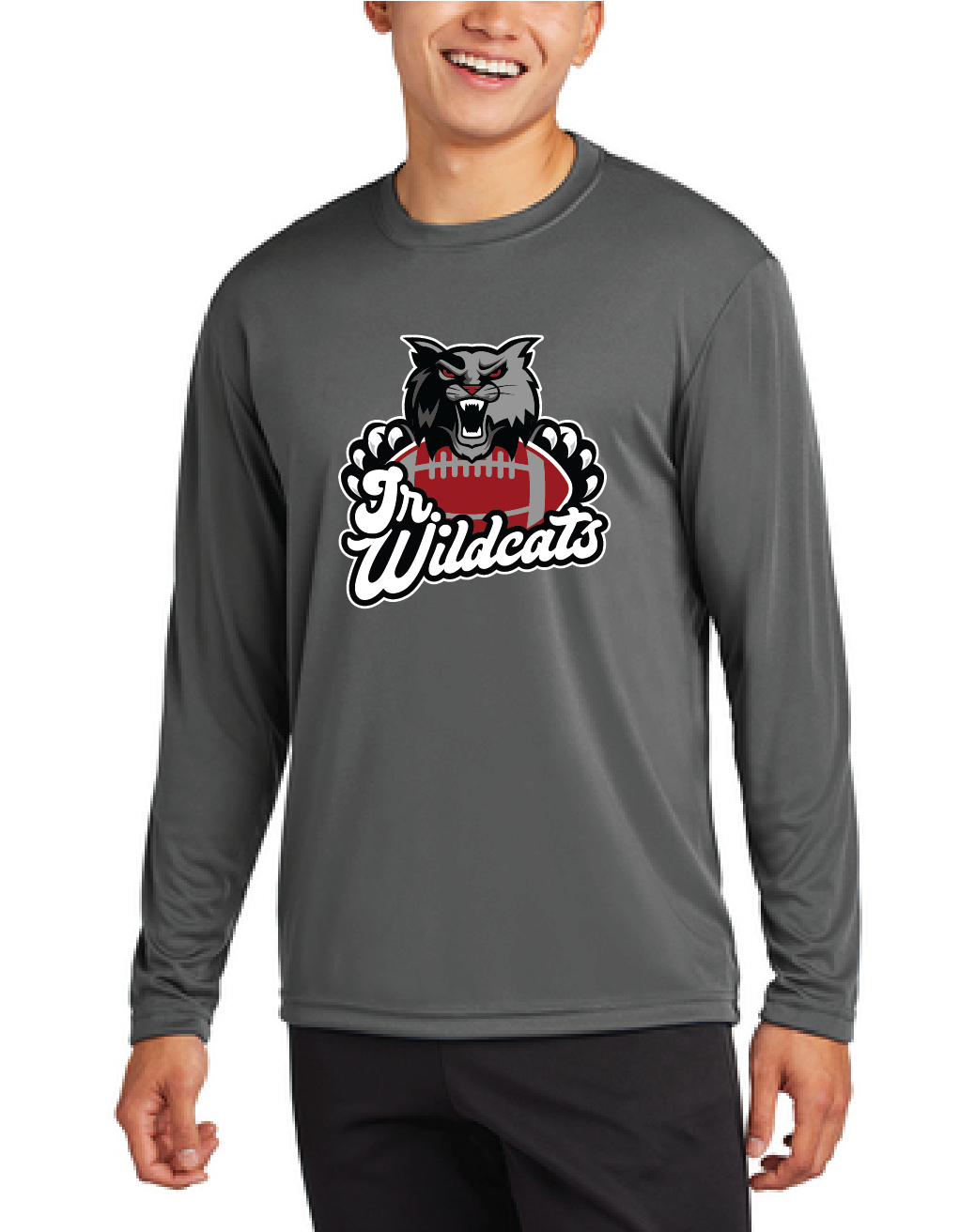 Made with 100% polyester, this long-sleeve shirt is perfect for all your active needs. The lightweight breathable fabric will keep you cool. Size runs slightly large, so order your regular size for a loose fit or size down for a more fitted look. Great for fans or family members of the Toppenish Junior Wildcats football team.