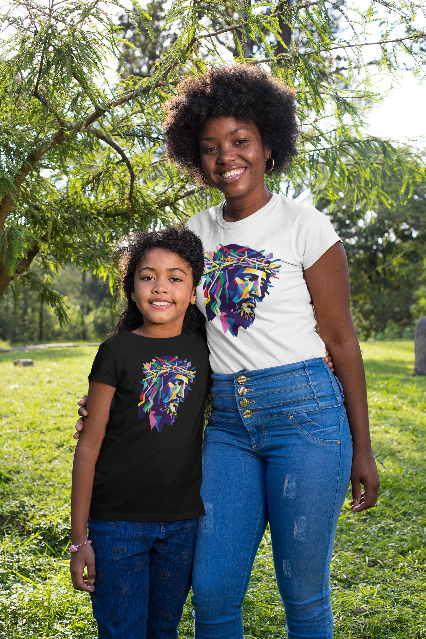 Beautiful abstract graphic tee depicting Jesus with a crown of thorns. Crafted from premium 100% cotton, this tee seamlessly combines comfort with spiritual expression.